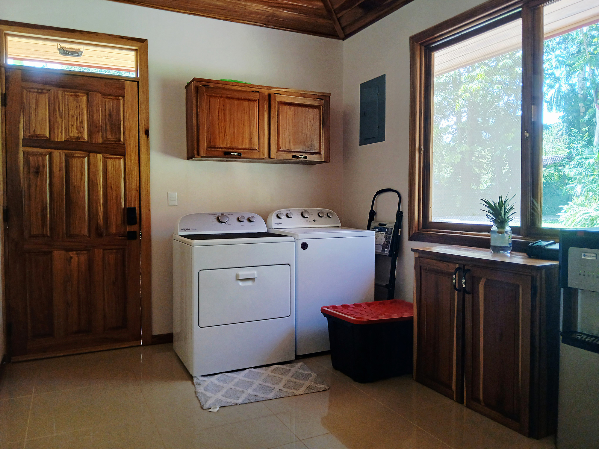 Step outside to enjoy the saltwater pool, operated by a smart app for remote control of lights and water pump. The property also includes a carport, storage bodega, and advanced security system with cameras, night vision, and motion lights. Fully fenced for privacy and peace of mind, this home offers both relaxation and security in a tropical setting.